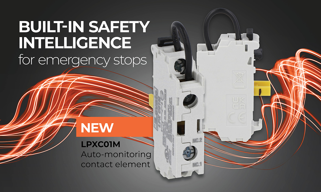 LOVATO Electric has expanded its range of accessories for mushroom head pushbuttons with the launch of the LPXC01M auto-monitoring contact element, designed to ensure continuous supervision of emergency stop functionality in machinery and control systems.