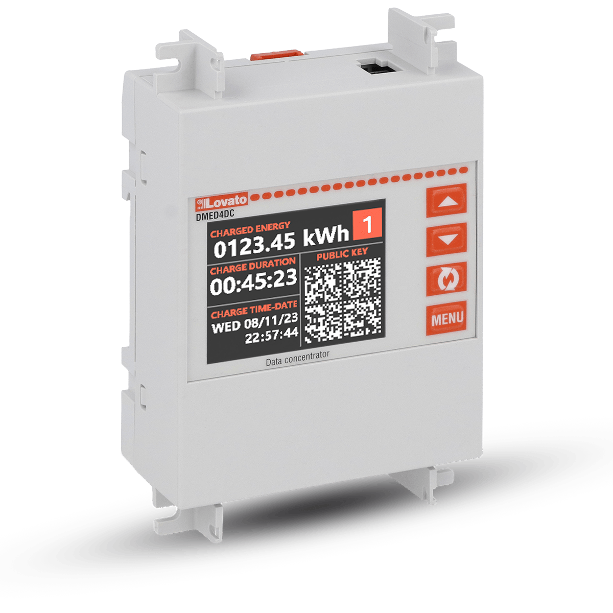 The DMED4DC2 is a compact remote display designed to work with LOVATO Electric DMED4 DC energy meters for EV charging stations.